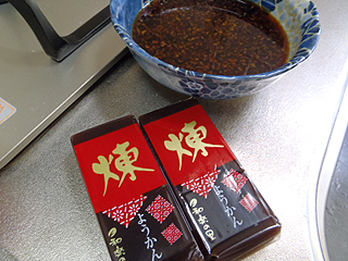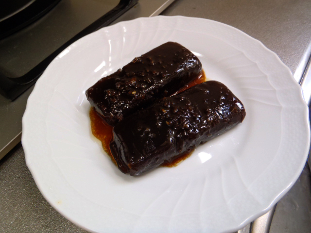 羊羹生姜炒めは表面が溶けながらもなんとか完成。こちらも胡麻大福同様結構旨い。温まって甘さが強くなった羊羹の味を醤油と生姜の味が引き締める。通常の羊羹にこういうひと手間を加えて出すと、新しいお菓子として楽しめそうです。餡子物には「生姜で炒めればなんとかなる理論」が大いに活用可能ということが分かりました。