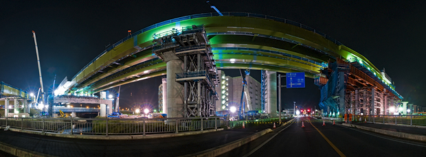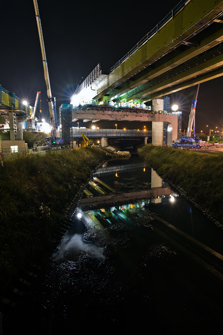 深夜に行われるジャンクションの架設工事を見に行くのは、これで4回目だ。一昨年、および昨年10月には、2年連続で千葉県の東金の工事を見に行って大興奮したし、同じ2009年の4月には、あの大橋ジャンクションの架設工事を見に行って、やっぱり大興奮だった。