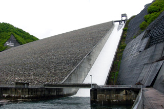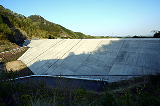 ロックフィルダムにはセンターコア型のほかに、もうひとつ代表的な形式がある。それがこの表面遮水壁型だ。 |