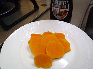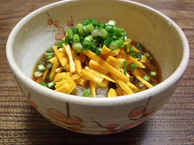 | 残ったウコンはジンジャーシロップの生姜の代わりに使ってみました。出来上がったシロップは子供用の風邪薬シロップのような甘さと薬臭さ。シロップ作りに使ったウコンは割りと食べれる味でした。 |