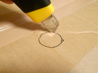 まず頭が入るぐらいの適当なダンボールを用意する。 なお「下」の文字は以前配達に使ったとき書いたもので、今回のとはなにも関係ありません。