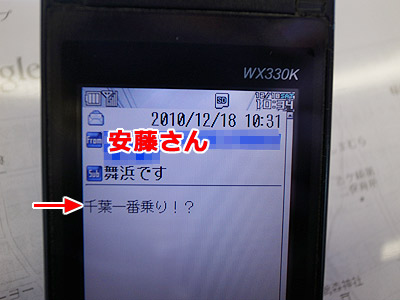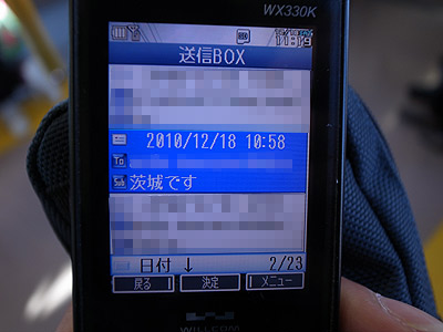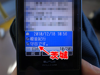 そろそろ取手駅というところから、携帯をいじり「茨城に着きました!」的なメールを準備していた。改札を出たらすぐに「送信」ボタンを押せるようにしていたのだ。