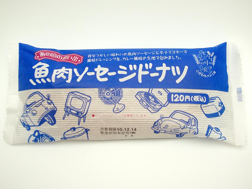 魚肉ソーセージドーナツ。たまにパッケージが不透明で中身が見えないパンがありますが、だいたいそういうのは中身が想像できます。 でもこれはまったく中身が想像できない。書いてあるのがテレビとか三輪車とかレコードプレーヤーです。 ちょっとみなさんも想像してみてください。 想像しましたか。では、中身はこうなっています。