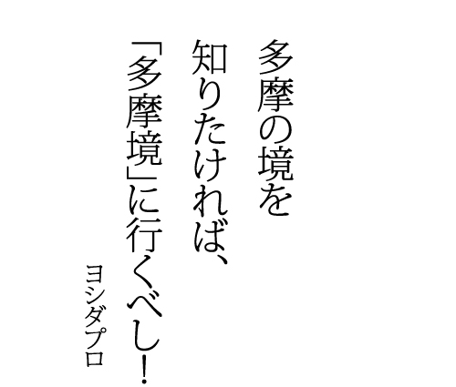 多摩って一体どこまでが多摩なのか、 誰もが一度が直面することになる難題かと思いますが、 そのひとつの答えとして、多摩にとある駅がございます。 それが「多摩境」という駅ですね。 多摩の境と言ってるんですから、 きっと多摩の国境があるのではないでしょうか。 行ってみてください。