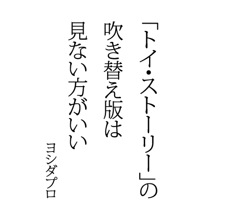 あのピクサーの代表作「トイ・ストーリー」、 どれもチョー素晴らしい内容なのですが、 日本語吹き替え版のはあまり見ない方がいいですね。 寿明さんは素晴らしいのですが、 ジョージがね。 なんかいまいちなんですよね。 ジョージもうちょっとちゃんとやってほしかったです。