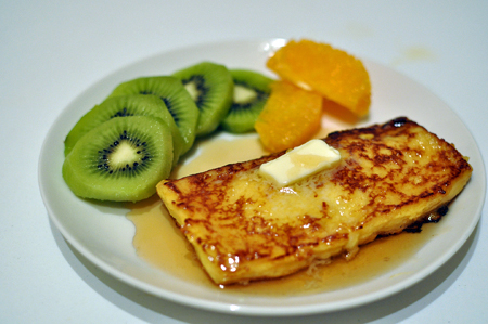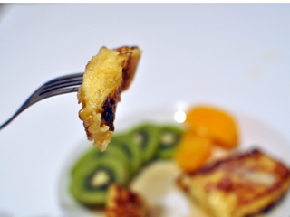 フレンチトーストも食べてみる。高級な食材たちに合わせてフルーツを添えてみた。凄く凄く美味しそうだ。