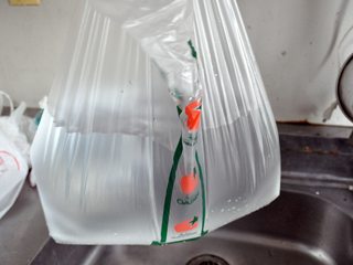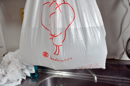 高級スーパーのレジ袋でも、水が漏れる。ならば他のスーパーの袋が漏れてもしょうがないよな。そんな気楽な状況で登場した普通のスーパーの袋が大活躍を見せる。