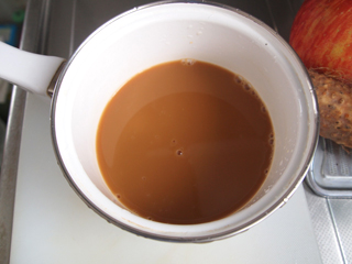 味つけが砂糖だけだから寂しいのだ。水の代わりに淹れてあったコーヒーを鍋に注ぐ。