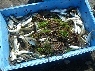 この年は網を引く手ごたえが軽かった。去年よりも人数が少ないのに軽いという矛盾。いや、もちろん網にゴミやクラゲが入っていないからという前向きな理由も考えられるが、やっぱり魚があまり入っていないと考えるのが自然だろうか。