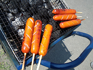 しかし、そんなローテンションの状況をひっくり返してくれたのが、一匹の巨大ウナギだった。たぶんこれから沖へと産卵に向かうところだったのだろう。去年に引き続き「地引網とウナギ」という意外なマリアージュに沸くメンバー達。小さく切れば15人くらいは食べられるかな。ありがとう、ウナギ。 |