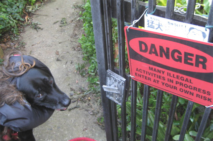 「猛犬注意」な 掲示に 対しても、