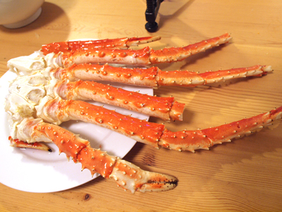 せっかくのタラバ、食べることに集中したいのだが、じゃんけんをやって勝った。 それでも、ガッツポーズをして写真を撮ると、ほんの少し勝利の気分が味わえる。 が、そんなささやかないい気分なんかどうでもよくて、早く食べたい。