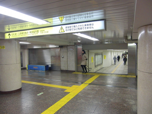 いいねえ。このメトロ的通路。帰ってきた、って感じがする。浮かれた東京駅地下、正確に言うと三菱系ビルの地下の浮かれた感じとは一線を画す佇まい。地下はこうでなくてはならない。