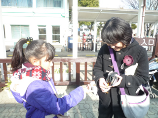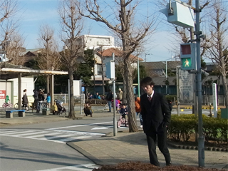 2人の写真を撮るため先回りしようと急いでいたら、スーツを着た若めのサラリーマンが信号を守りながら渡ってきた。子供の為の交通公園にスーツ姿で歩かれるともの凄い違和感。目を奪われてしまいあまり2人を撮影できなかった。