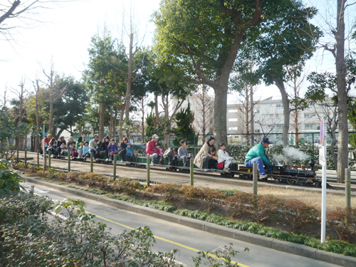 SLの煙の臭いを嗅ぎながら園内を一周。途中ちょっとしたスピードのアップダウンがあって楽しい。