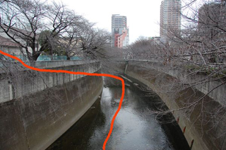 境界線が神田川をはなれ、旧流路に入り込むのはこのあたりだ。