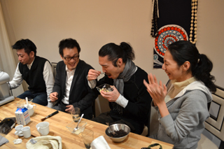 味見した人たちの感想は 「アジアっぽい味」(高橋さん) 「女子ウケしそう」(ナガイくん) 「アンコと合うかも」(久間さん) 「でも美味しい」(高橋さん奥様) と、その味から、なぜか和風のなにかを感じるようだった。 ただ 「香りが弱い」(久間さん)、 「メインではない美味さ」(ナガイくん) など、美味しいけれどもいささかパンチの弱い、ひな壇の真ん中へんに座っている芸人みたいな評価となってしまった。