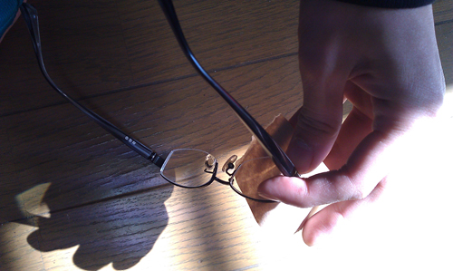めがねにガムテープを貼って、溢れないように水をそそぎ
