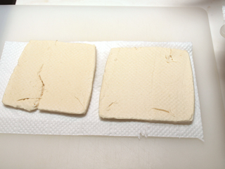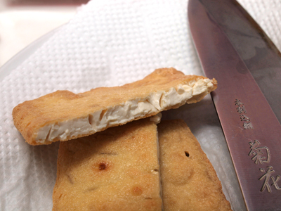 出来たての油揚げだったのでそうする必用もないかと思ったが、揚げ納豆の定則どおりに、納豆を詰めた油揚げをさっとあぶった。