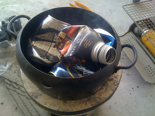 アルミ缶投入です。バーベキューの匂いがします。