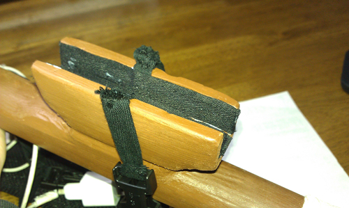 MacBookを傷つけないために、挟むところには布を張りました。