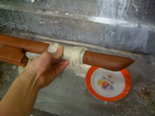 持ち手には滑り止めになるように布を巻いています。