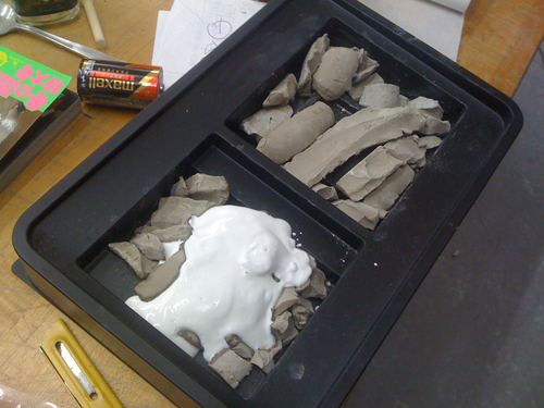 説明書の入っていた穴は、最初に石膏を流し込んでおいて埋めました。