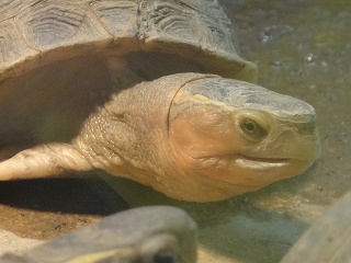 スッポンモドキという亀だ。「ブタハナガメ」という別名もあるそうで、確かに鼻が特徴的な形をしている。ブサカワイイという系列だろうか。