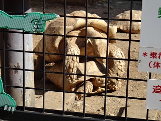 ゾウガメゾーンの近くにはあるのは、リクガメのタッチコーナー。ここでは囲いの中に放されている亀たちとスキンシップを取ることができる。