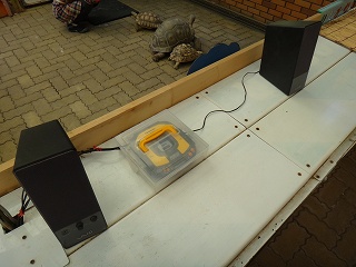 屋外にある柵の向こうには、ゾウガメたちがたくさんひなたぼっこをしている。穏やかな光景でもあるが、その脇ではアグレッシブに活動する亀のカップルが。