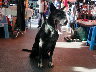 ソーセージを探して露店を歩いているとやたら犬に会う。ノラ犬である。首輪がついているのもいるので道路で放し飼いしているのかもしれない。それをノラというのか。