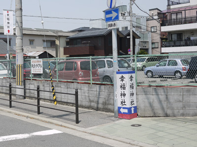 最初に方向性だけ分かれば、そんなに迷うような複雑な道じゃないのに。しかも住宅街で他にお店などが全然ないため、点在する「幸福神社」看板が余計に目立つのだ。