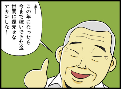「まー、東京のにーちゃんもそこ座りーな。コーシーでも飲んでいき、コーシー」