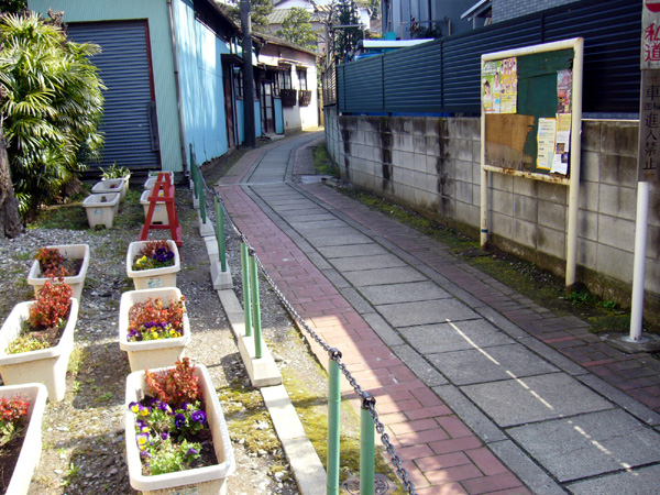 この写真にはうつっていないが、ぼくにはここを走り回る子供たちの姿が見える。たぶん友達どうしでサッカーか何かやっているのだ。そして画面に「千駄木 こころの道」というタイトルが現れて、NHK小さな旅のテーマが流れ出すのだ。