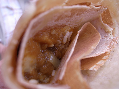カレーの匂いと甘い匂い。 クレープの生地が甘い匂いを発しているのだ。そこにカレーのスパイシーな匂いが混ざる。嫌いじゃない、この匂い。