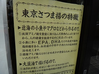 店頭には「東京さつま揚」なる説明書きが。東京なのか薩摩なのか地名がだぶっているが、なんだか期待できそうな響き。店内にのケースにはたくさんの商品が並んでいて、このお店を利用している人がちゃんといるんだなあと、当たり前のようなことを改めて感じた。