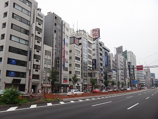 iPhoneやら無線LANやらと看板を掲げたビルの間に、ぽつんとある時代を感じさせる建物。明らかに周囲の様子とは違うものを放っている。
