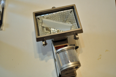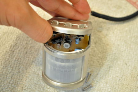 センサーと照射部分をつないでいた所を外してみた。この状態でもちゃんとセンサーは反応して光る。おぉ、意外と出来るもんだな。動きに反応して光るコンパクトなシステムが千円で!これは凄い。