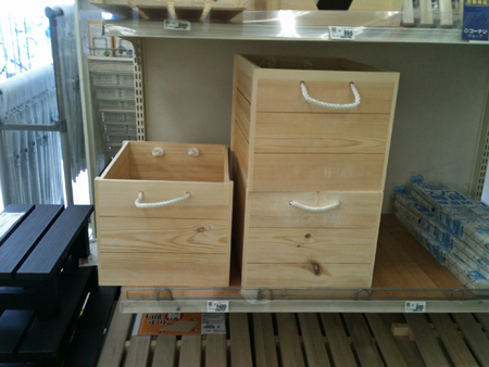 箱…箱…どうしようか、自分で作るか。と思い、またホームセンターに材料を買いに行った。材料を探していた時に便利BOXみたいな箱を見つけた。自分で組み立てても、きっとこういう風に綺麗に作れないよね。じゃあ、これでいいや。
