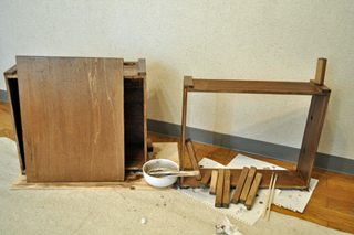 部屋の汚れに比例して、部品は出来上がる。木クズが部屋中にまんべんなくいきわたった位にパーツは切れた。