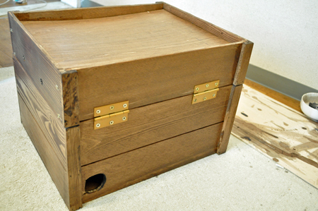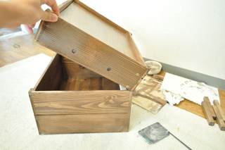 パーツは出来上がったので、宝箱っぽい重厚な雰囲気が出てくれればいいな。とニスを塗る。部屋の中に妙な匂いが充満する。工作している時は大体外食だ。