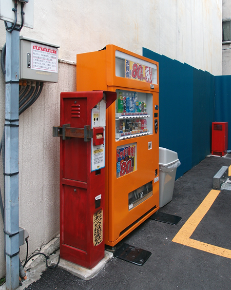 「この"1"っていいよね」 「1台しかないのにね」 「このまわりの微妙なスペースがいいよなあ」 「自販機は置けるけどもう1台は無理、っていうね」 「背後の塀のおさまりがいい」
