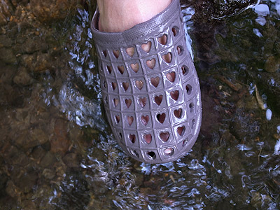 靴は濡れていいものに履き替えている。 靴の柄はハート。数ある柄の中から自然にハート柄を選んでしかったのだ。どうやら僕の心には女子高生が住んでいるらしい。そういえばブヨに刺された時の悲鳴も「キャ!」とどこか可愛らしい。ニホンザリガニは発見できないけれど、僕のそういう愛らしい一面は発見できた。ニホンザリガニ以上の収穫なのではないだろうか。