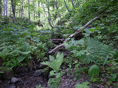 山道を10分くらい歩いてニホンザリガニスポットに着いた。先に僕が探していたような沢と変わらない。どこに生息しているかは紙一重のようだ。この辺だとここにしかいないんじゃないかな、と言っていた(札幌全体でもここと、あともう一箇所くらいにしかいないのでは、とのこと。やっぱり幻なのだ)。
