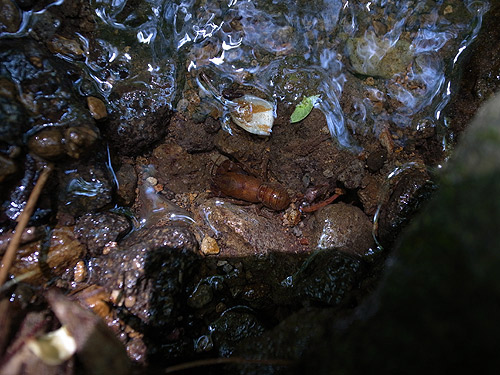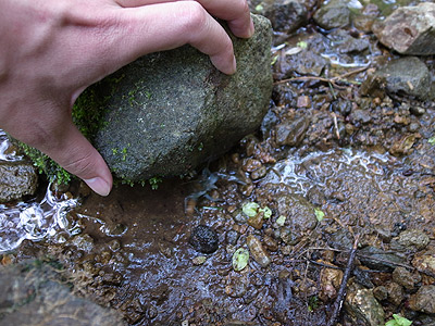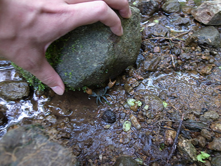 石をのけるとお目当てのニホンザリガニがいた。 幻の中の幻のニホンザリガニを見せてもらった後だから若干かすむけれど、十分に嬉しい。きっとノーベル賞を受賞したらこんな気持ちなんだろうと思う。