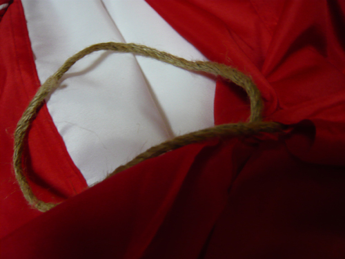 もともと入っていた紅白幕を吊るすための紐を抜きとります。