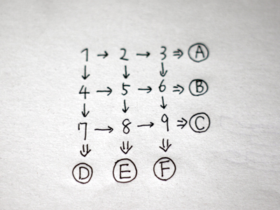 藤原:あとチャート作りのノウハウで言えば、まず結果を揃えてから、その後に末端から質問を埋めていくとうまく出来ます。最初の質問はぼんやりとしたものでいいんじゃないでしょうか。誰に向けてのノウハウなのかわかりませんが。 |