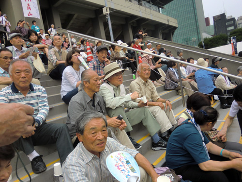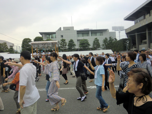 そんな歴史に思いを馳せながら、踊りを観賞。老若男女、飲み食いもせずノンストップで踊り続けています。汗だくて浴衣が半透明になっている人や、トリップしたような目で激しく踊るオネエ系の人もいます。