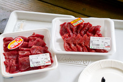 鉄板焼きの主役はやはり肉。肉食べたい。 ということで、カルビとロースを準備。