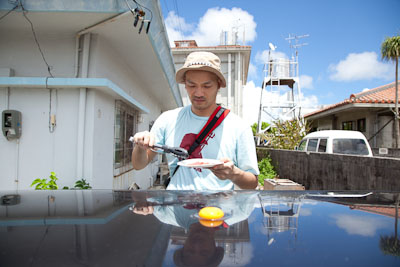 今回は、卵や肉が焼ける前に自分が日焼けしてしまった。 沖縄は紫外線量が内地の2倍くらいあるんですよ。